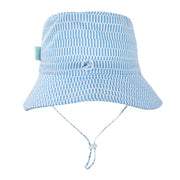 Bring a touch of Mediterranean magic to summer days with this bucket hat featuring an azure blue and cream print, designed by Melbourne artist Jacinta Weir from Two Little Ducklings.