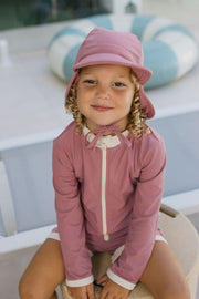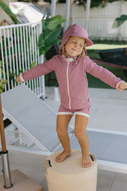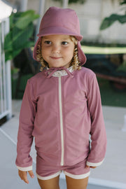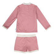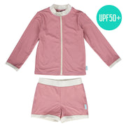 ACORN WILD ROSE UPF50+ ZIP RASHIE TOP AND SHORTS SET- DUSTY PINK/CREAM