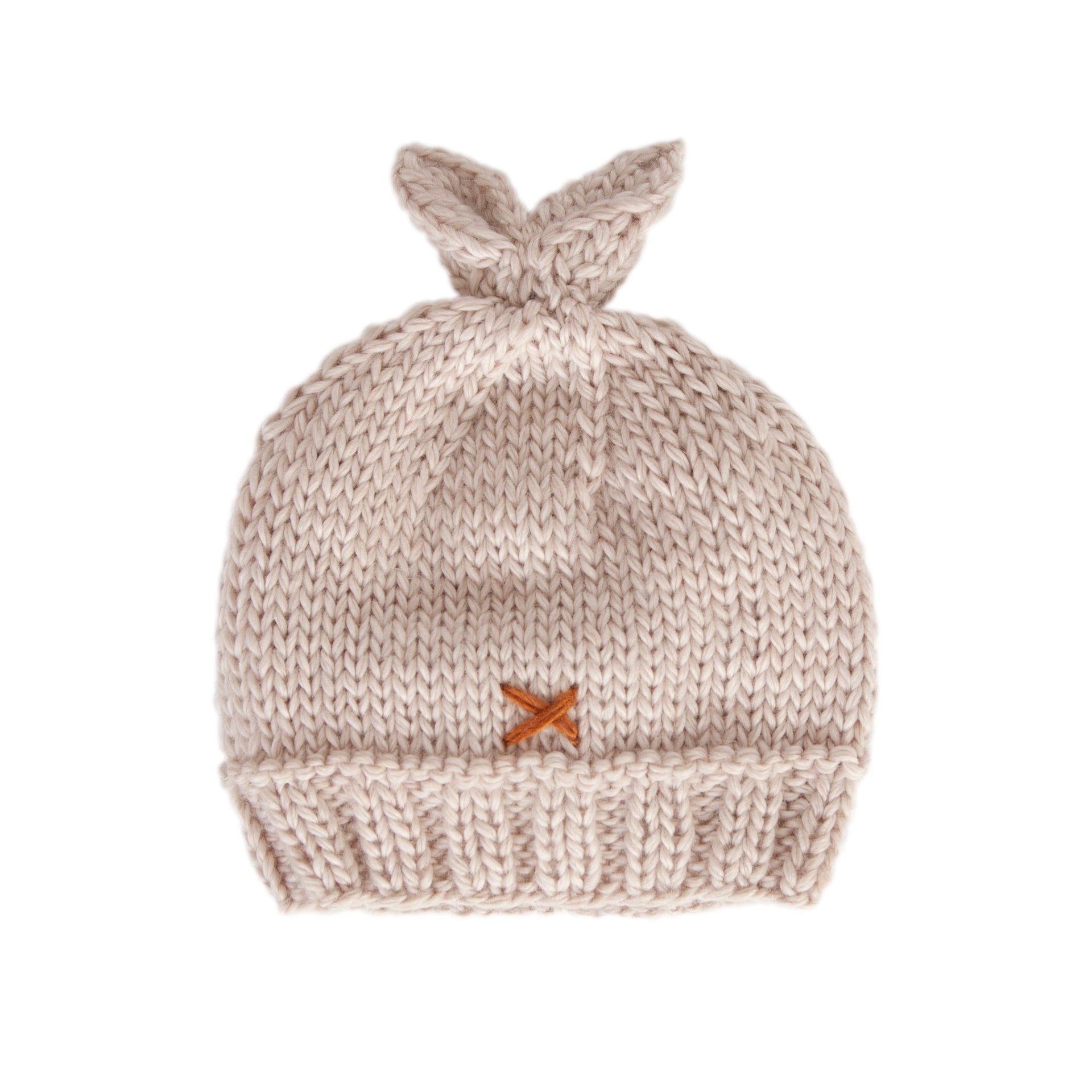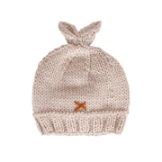 This super soft wool blend knit beanie with adorable bunny ears on top and a sweet bunny nose.
