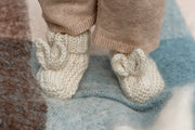 Super soft wool blend knit baby booties with adorable bunny ears on top.