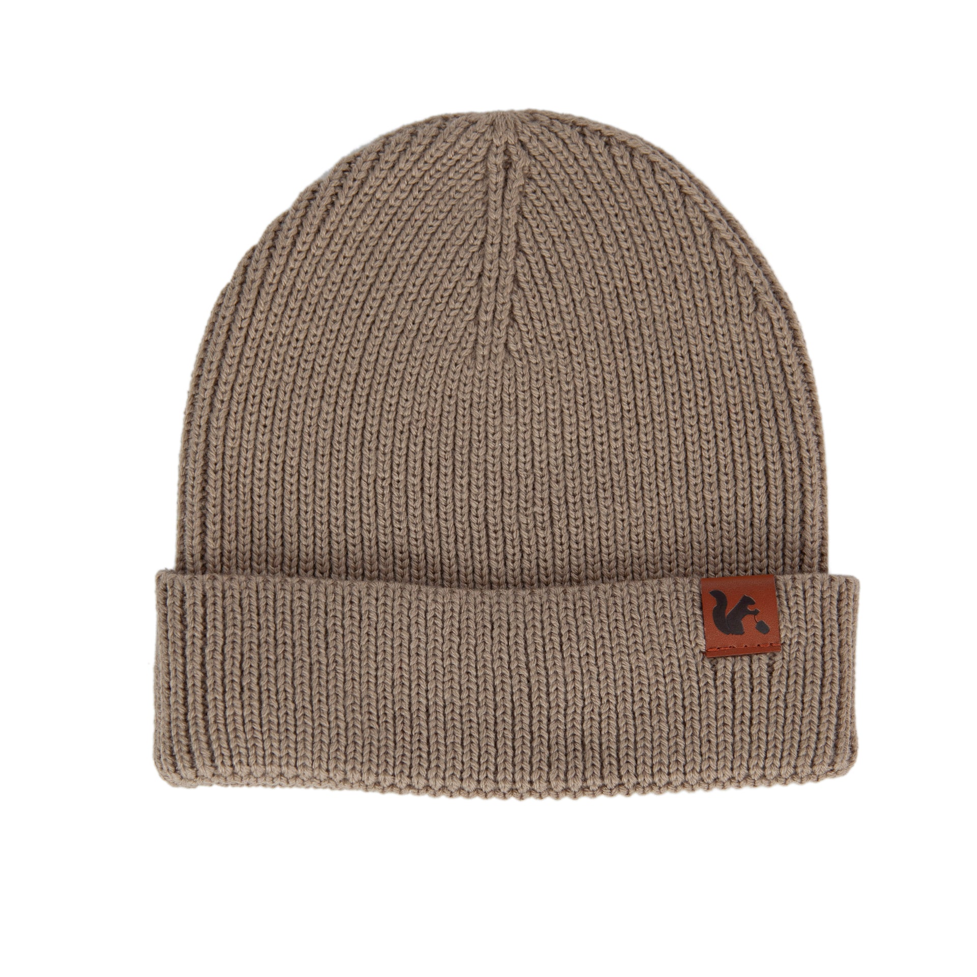 The beanie is finished with a super cute leather squirrel tab at the front, adding a touch of fun and whimsy.