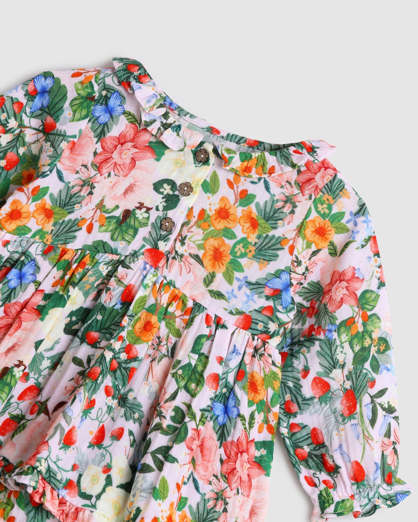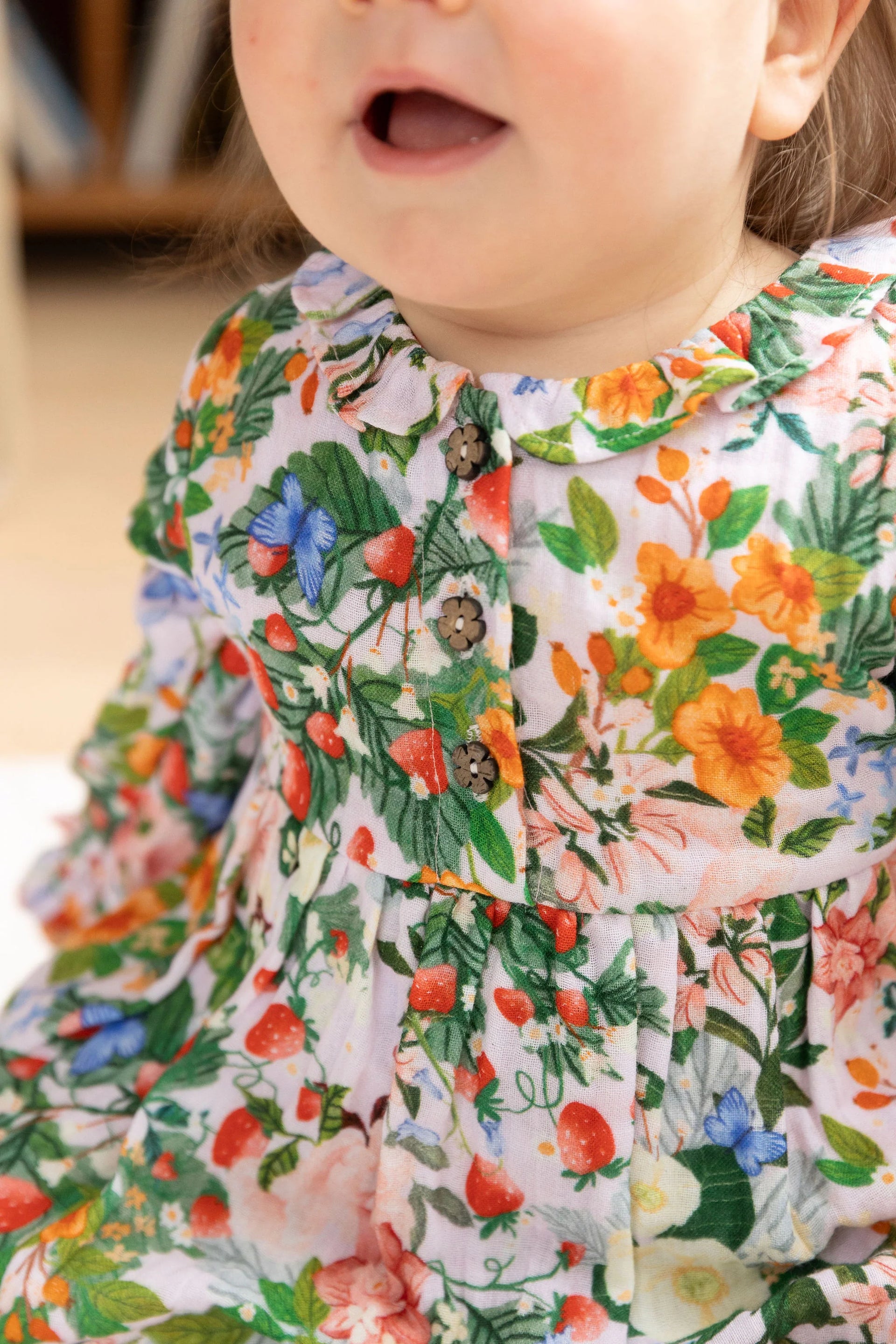 The Ivy Baby Dress in Strawberry Pink ... where sweetness meets sophistication in the most adorable way! The charming frill collar adds a touch of vintage-inspired flair, while the long sleeves boast darling frills at the cuffs.