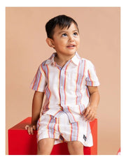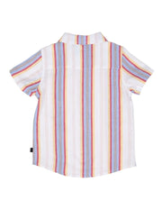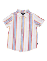 The Flashback Shirt by Animal Crackers will bring back the nostalgic vibes from your own childhood. With its vintage retro stripe fabric, it's an update on an old school classic. Featuring centre front button through design, short sleeves and 100% cotton fabric. Team back with the Flashback Short for the ultimate summer style.