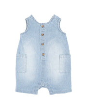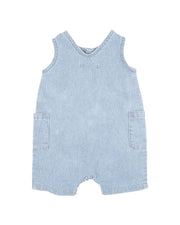 This relaxed denim-look romper is a farmyard favourite, perfect for exploring paddocks, playdates or lazy weekend strolls. Made from soft, breathable cotton with a gentle stripe wash and faded finish, it's an effortless all-in-one that combines practicality with charm.