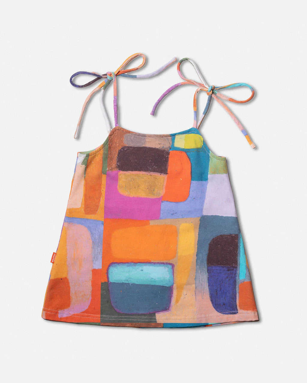 Add a splash of colour to your little one’s wardrobe with this Spaghetti Strap Dress! Featuring a vibrant, abstract design with bold blocks of colour, this spaghetti strap dress is perfect for any sunny day or special occasion.