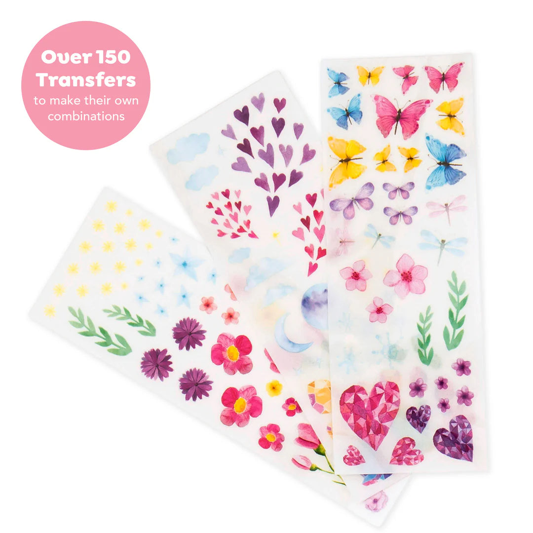 Transfer Magic is a super easy crafting activity that you can take anywhere, because there is no mess. Simply select a transfer sheet, remove the backing paper, position the selected image, face down on the background card and rub it using the pencil included.