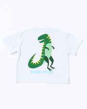 This comfy cotton tee features a cheerful front chest print and a bold back graphic of a dancing dino with the phrase "DINO-MITE!"—because your little one is exactly that. A bright, feel-good design perfect for adventures big and small.