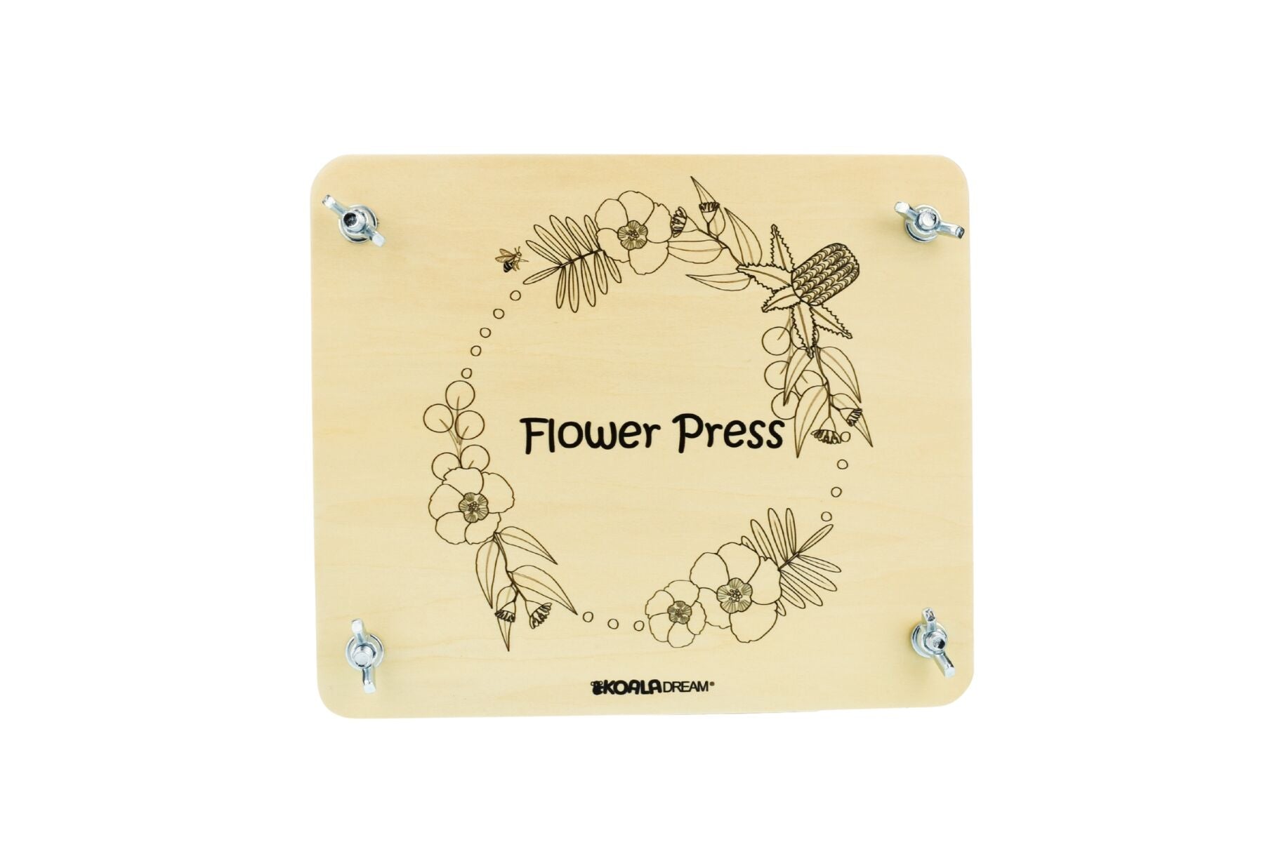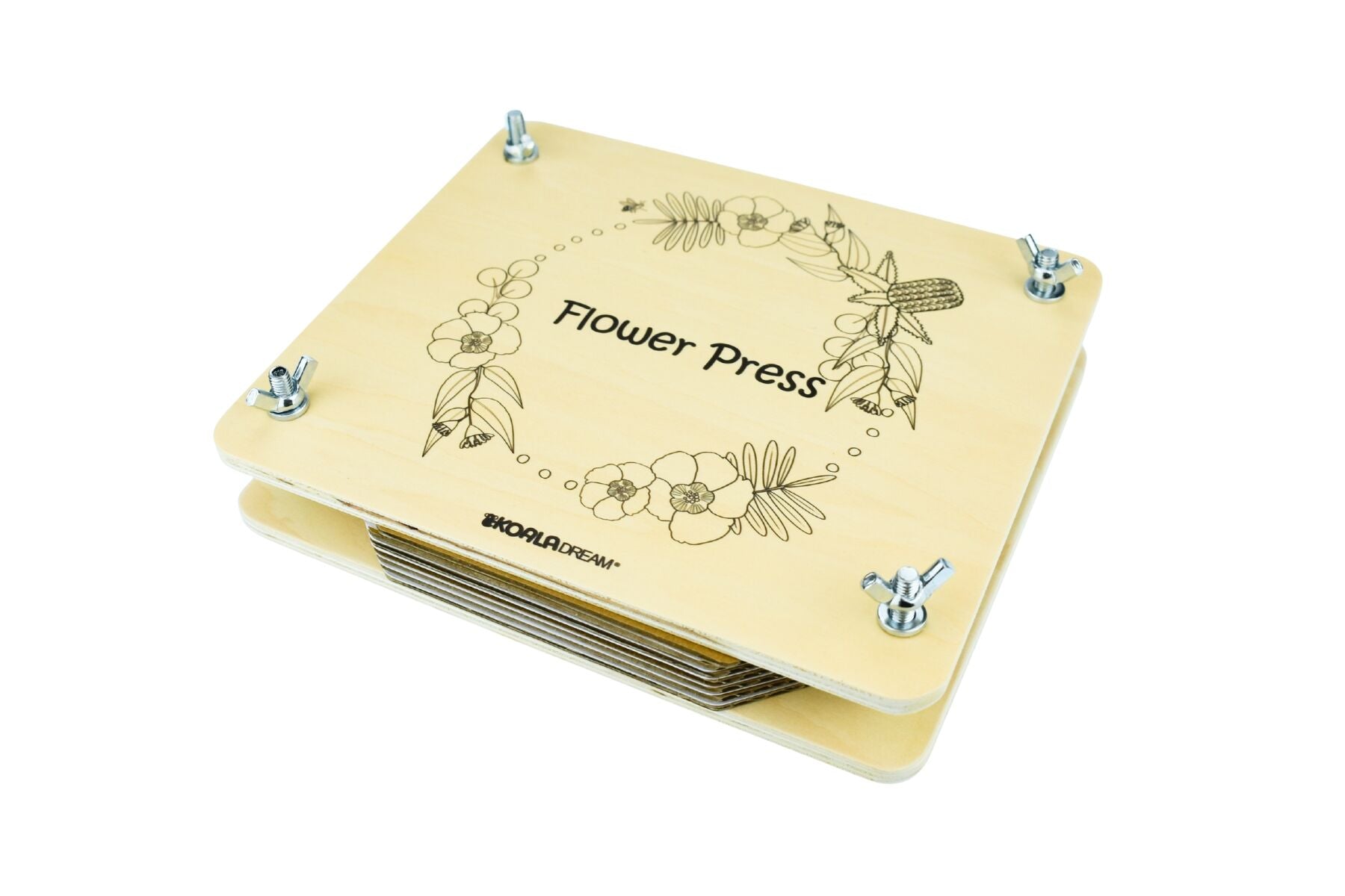 The Koala Dream Wooden Australian Flora Flower Press is a delightful way for children and adults alike to capture the beauty of nature and preserve special memories. Designed in Australia and featuring beautiful Australian flora on the front, this flower press is as lovely as it is practical. With 12 sheets of absorbent paper and 7 sturdy cardboard spacers, itās perfect for creating your own treasured collection of flowers and leaves. Once pressed and dried, your floral creations can be transformed into beautiful bookmarks, charming card decorations or unique touches for your craft projectsāturning natureās beauty into keepsakes to cherish.