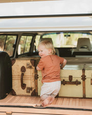 Perfect for little adventurers on the move, these striped shorts are a warm-weather staple with timeless style. Featuring a soft neutral palette and a breathable cotton fabric, they're fully lined for comfort and designed to pair effortlessly with printed tees or bodysuits from the collection. Whether it's a day at the park or a summer picnic, these shorts are made for comfort and play.