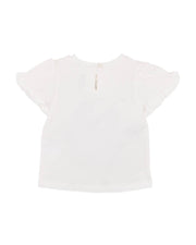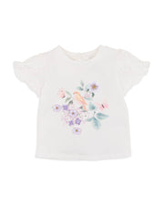 A fresh garden scene comes to life on this soft cotton elastane tee, where butterflies flutter, flowers bloom and a golden bird sings sweetly from its perch. The delicate illustration is partially embroidered, adding a special textured detail little ones will love. With fluttery tulip sleeves and a comfortable fit, it’s made for playdates, park strolls or everyday adventures.