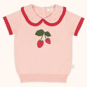 A little touch of sweetness. This short-sleeved knitted top features our strawberry design on the front and a soft collar trimmed with red edges.