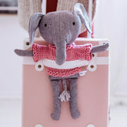 Edwina Elephant is the cutest princess in town. Made with the softest wool blend fabric and wearing a pink Australian merino wool jumper, she loves dress-ups, story time with Dad, and driving her brother crazy. She doesn't like spinach/