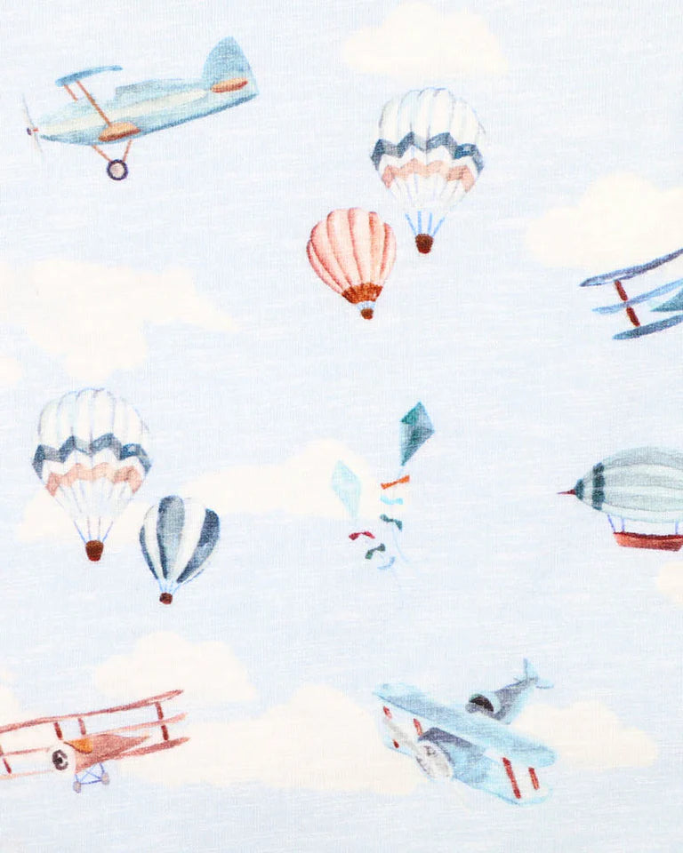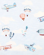 Let imaginations take flight in this dreamy zip romper, perfect for little adventurers. Featuring an all-over print of hot air balloons and vintage aircraft floating through the clouds, this soft and stretchy cotton elastane blend is gentle on delicate skin. A front zip opening makes changes quick and fuss-free, while a protective fold at the zip offers protection for delicate skin.