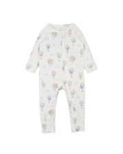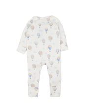 Let your little one float off on a dreamy adventure in our whimsical hot air balloon zip romper. Crafted from a soft and stretchy organic cotton blend, this long sleeve style features an all-over balloon print in soft pastel tones. Designed with a two-way zip for easy dressing and fold-over cuffs at both the hands and feet to keep tiny toes and fingers cosy, this piece is as practical as it is adorable.