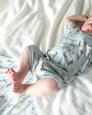 Bring a little countryside charm to your baby's wardrobe with this sweet farmyard short sleeve zip romper. Featuring a delightful print of animals, tractors and barns, it captures the magic of farm life in the softest EcoCosy™ viscose blend. Gentle on delicate skin and designed to move with your baby, it’s perfect for playtime or those lazy afternoon naps. The full-length two-way zip makes changes quick and fuss-free, with a protective safety fold at the neck for extra comfort.