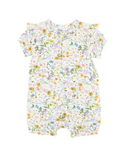 Let your little one bloom in the sweetest style with our Zara Floral Zipsuit. Perfect for playdates or peaceful naps, this cheerful all-in-one features fluttery shoulder frills and a whimsical floral print that feels like a spring garden stroll. Crafted from soft, stretchy cotton, it's as practical as it is pretty - designed for easy dressing and all-day comfort.