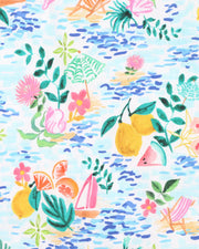 A sunshine-ready favourite, this lightweight cotton shortall is made for warm weather adventures. Featuring a colourful Amalfi inspired all-over print with beachy fruits and florals, it's designed with adjustable button straps for all-day comfort. Layer it over a tee or wear on its own for an easy summer outfit.