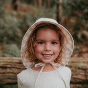 The most perfect nude colour in everyoneās fave pattern: gingham! This is one that will suit big and small, male and female, and styles of all kinds. Simple Flax on the reverse makes it easy-wear ā pair it with florals, stripes and plains. Available in Sun Bonnet, Ruffle Bonnet, Flap Hat, Panelled Bucket, Classic Bucket, Adults Frayed Bucket Hat, Ladies Sun Hat and Ladies Wide-Brimmed Visor.