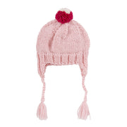 This super soft wool blend beanie is lots of fun with its two toned design as well as the contrast tip on the end of the side ties.
