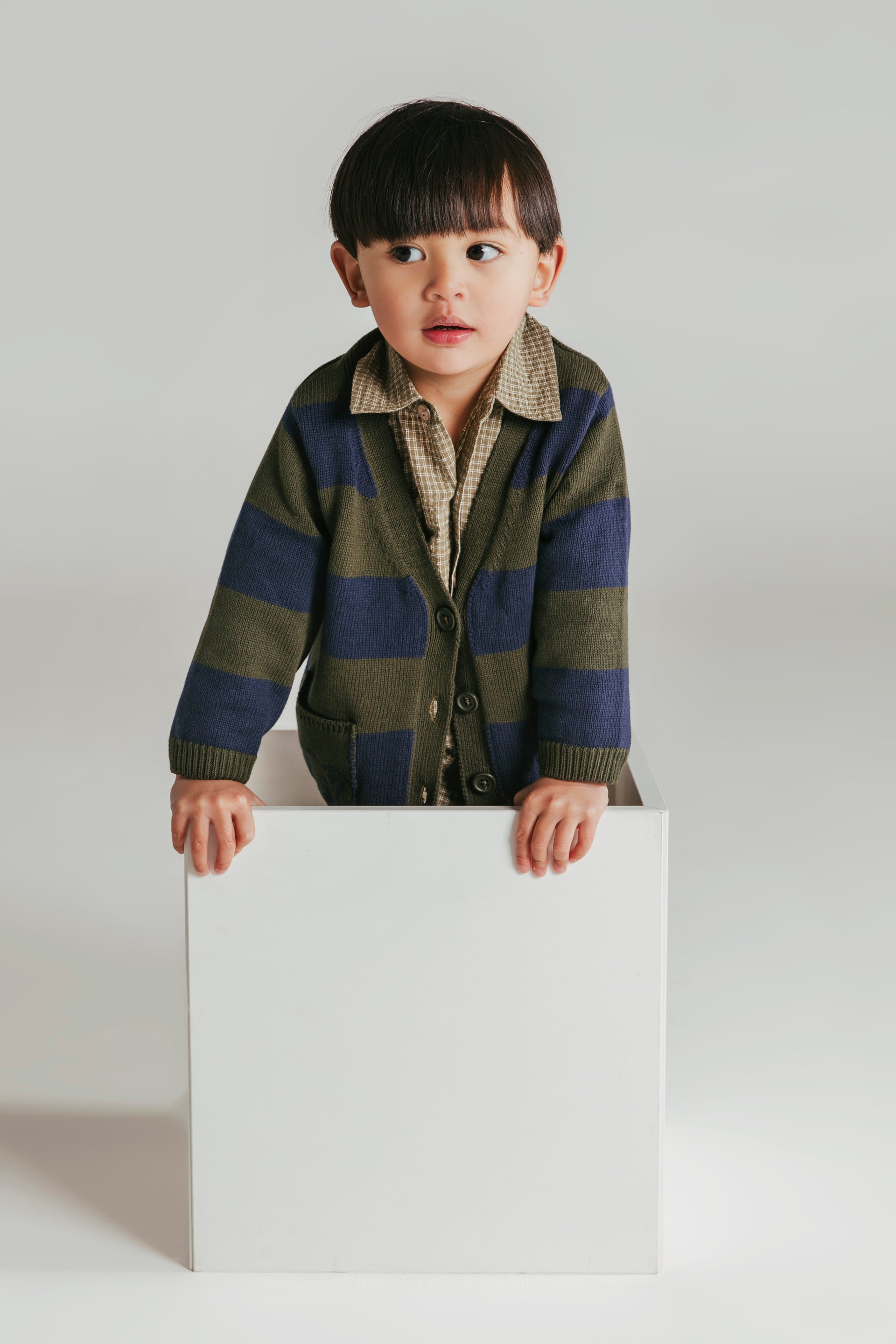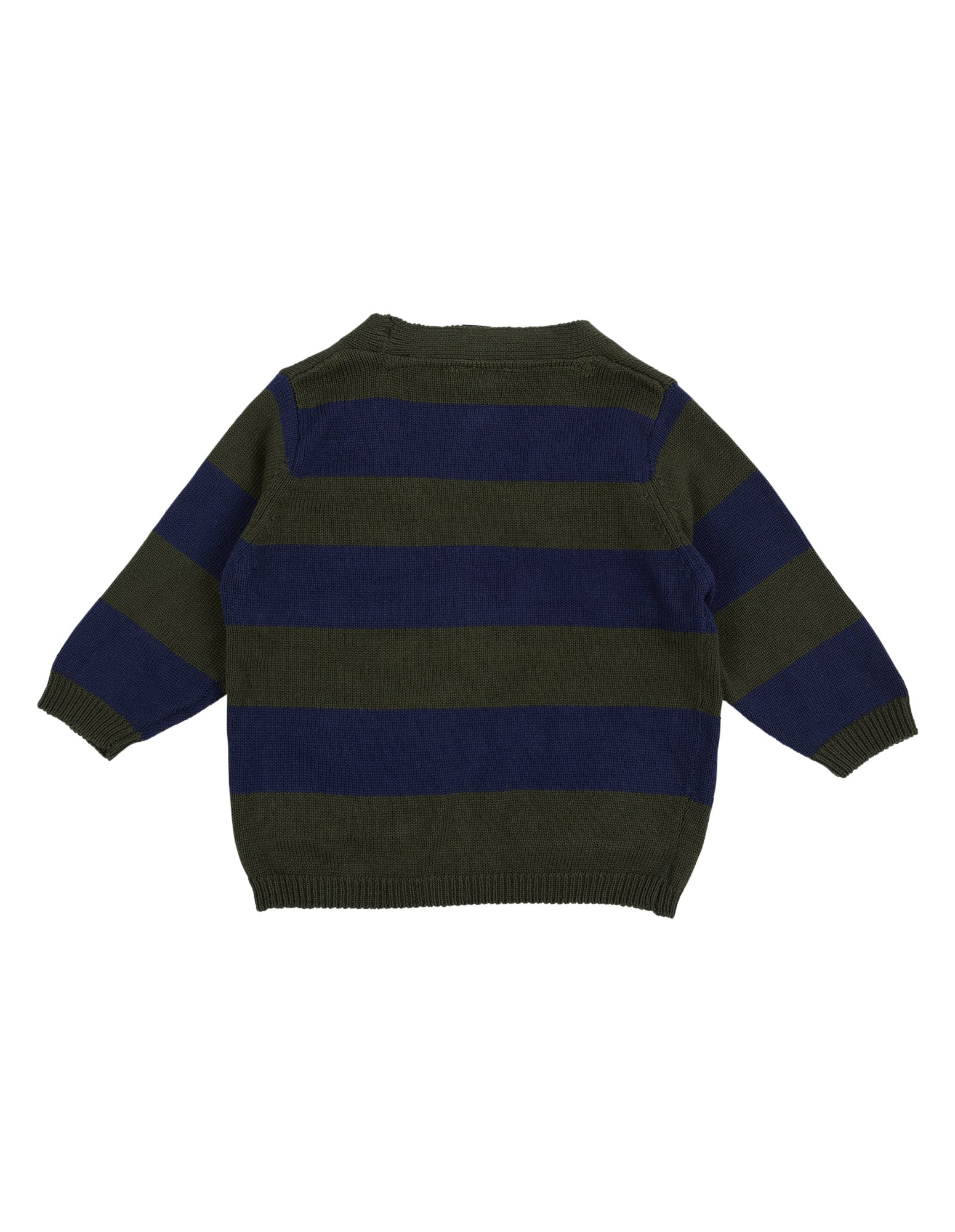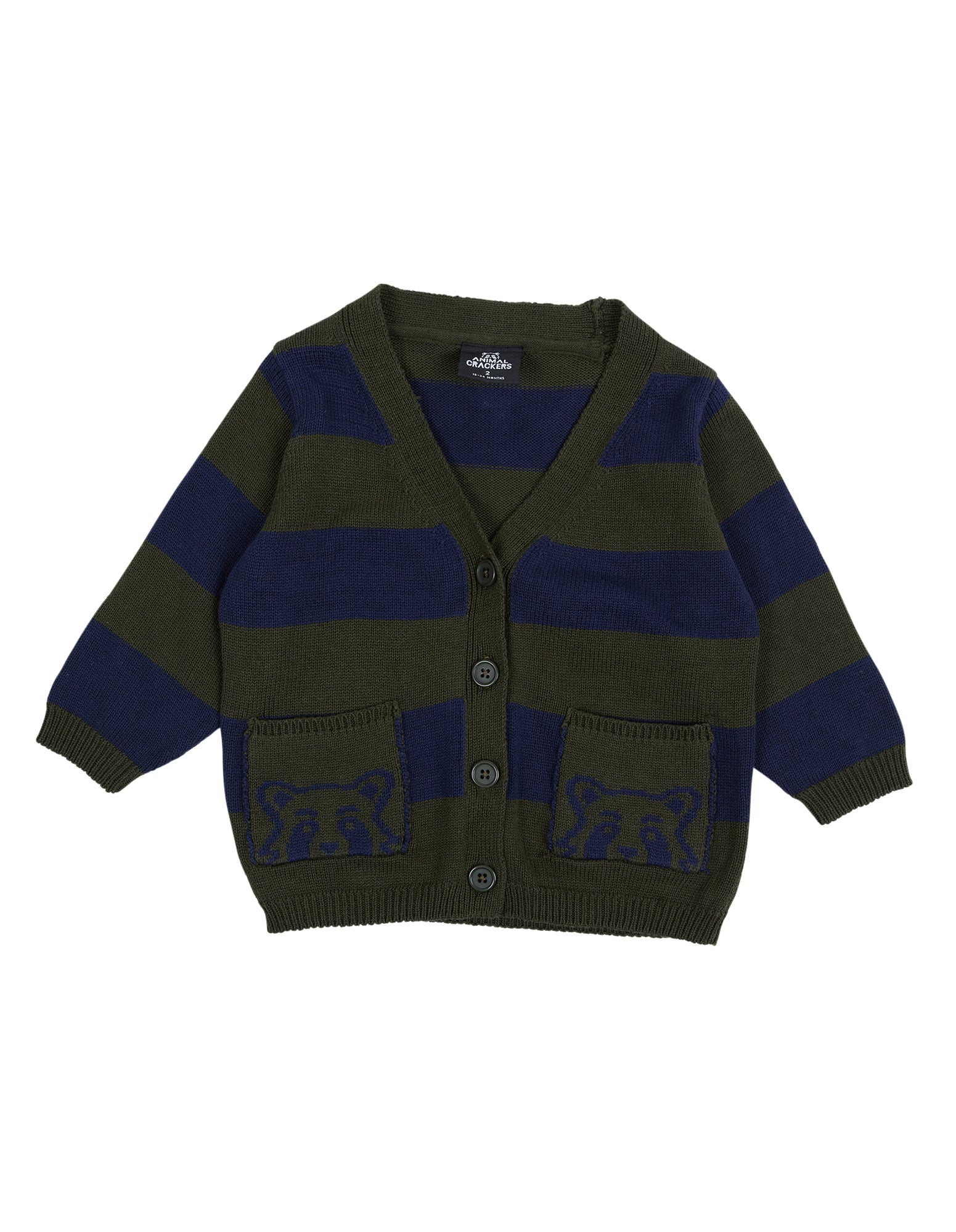 The Breakpoint Cardi by Animal Crackers is the perfect throw on style for your tiny humans this winter. The cotton yarn dyed stripe knit features ribbed neckline, cuffs and hem with CF button closure. Patch pockets with tonal Raffi intarsia detail creates a fun point of difference.