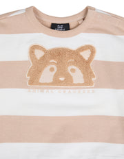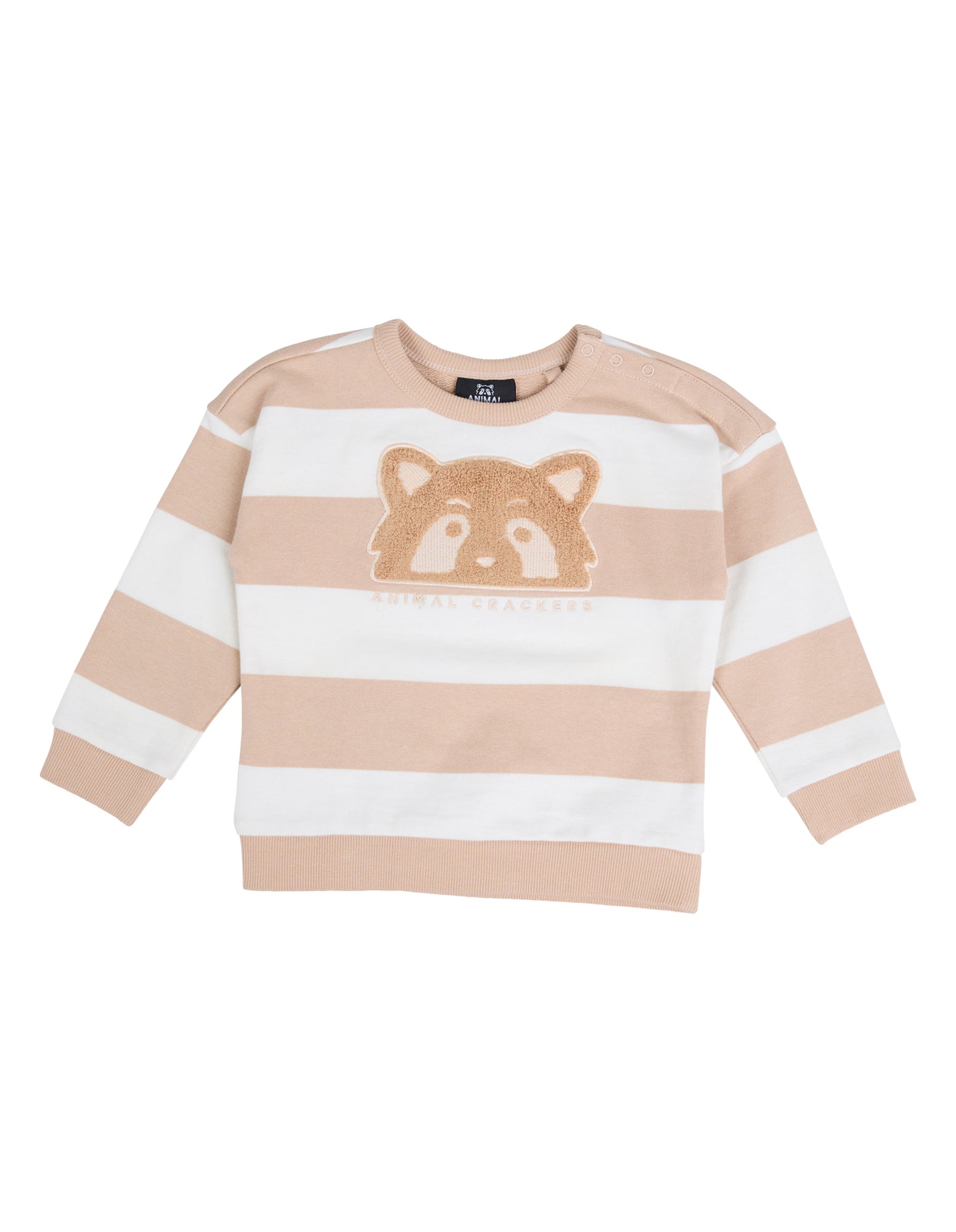 The Mascot Crew by Animal Crackers is a perfect addition to the season. Made in a regular fit with snaps on the shoulder to easily get on the off over the head. The crew is made from yarn dyed fleece and has Animal Crackers Raffie in a cute monochromatic textured artwork on the front chest.