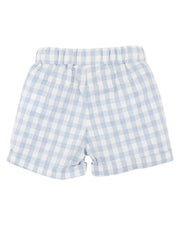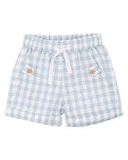 Whether it’s a sunny afternoon at the park or a family day out, our Axel Check Shorts bring effortless charm to any little wardrobe. Crafted from soft cotton in a timeless blue gingham, these shorts feature an elasticated waistband with a drawstring for a comfy fit, mock pockets with wood like buttons, and neatly cuffed hems that give a smart finish. Pair with the Axel Tee, Axel Bodysuits or Axel Check Sunhat for a matching summer look.