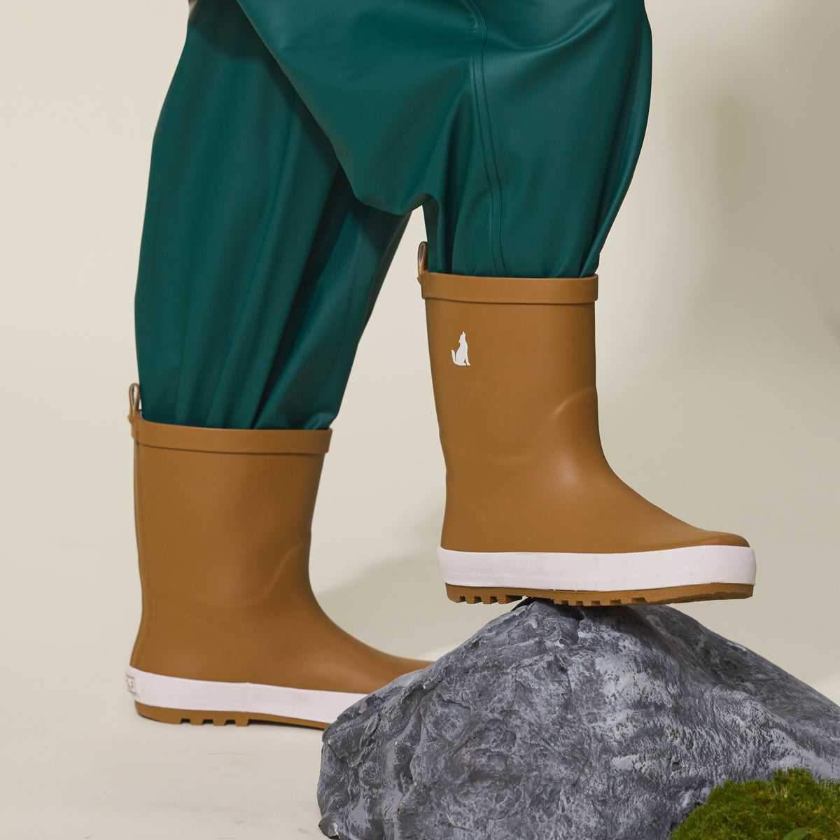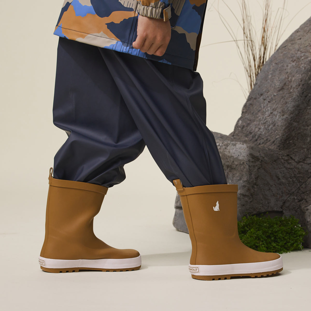 Perfect for outdoor adventures, Crywolf Rain Boots are lightweight, flexible and hand-formed from natural rubber for easy movement and superior wet-weather protection. Waterproof tested, each pair features reinforced panels for durability, ensuring they can keep up with active kids. With a high-grip tread and a soft bonded lining, Crywolf Rain Boots are the ultimate rainy-day essential.