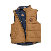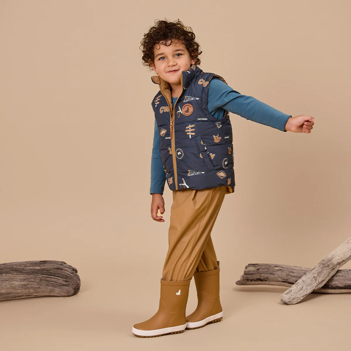 Crywolf Reversible Vests are a snuggly puffer style vest designed to be layered over tees and sweaters. With the 2-for-1 reversible design, kids can choose to show the plain colour or printed side depending on the day. The Reversible Vest is kind to nature, proudly filled with Repreve® recycled fibre and finished with Bionic Finish® Eco water repellent.