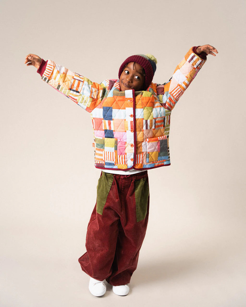 A showstopping investment piece, with its oversized structure is sure to last them a few winters over. Constructed in 100% Cotton, with an additional thermal inbuilt layer to keep them snug as a bug in a very stylish rug. The most gorgeous colours pulled from our hand painted/hand collaged 'Grandma's Basket' artwork, sure to pair well with absolutely anything this season.