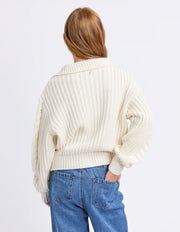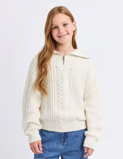 EVE GIRL DAHLIA 1/4 ZIP KNIT VINTAGE WHITE
