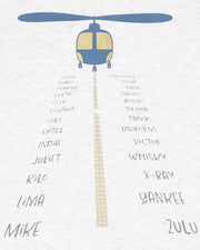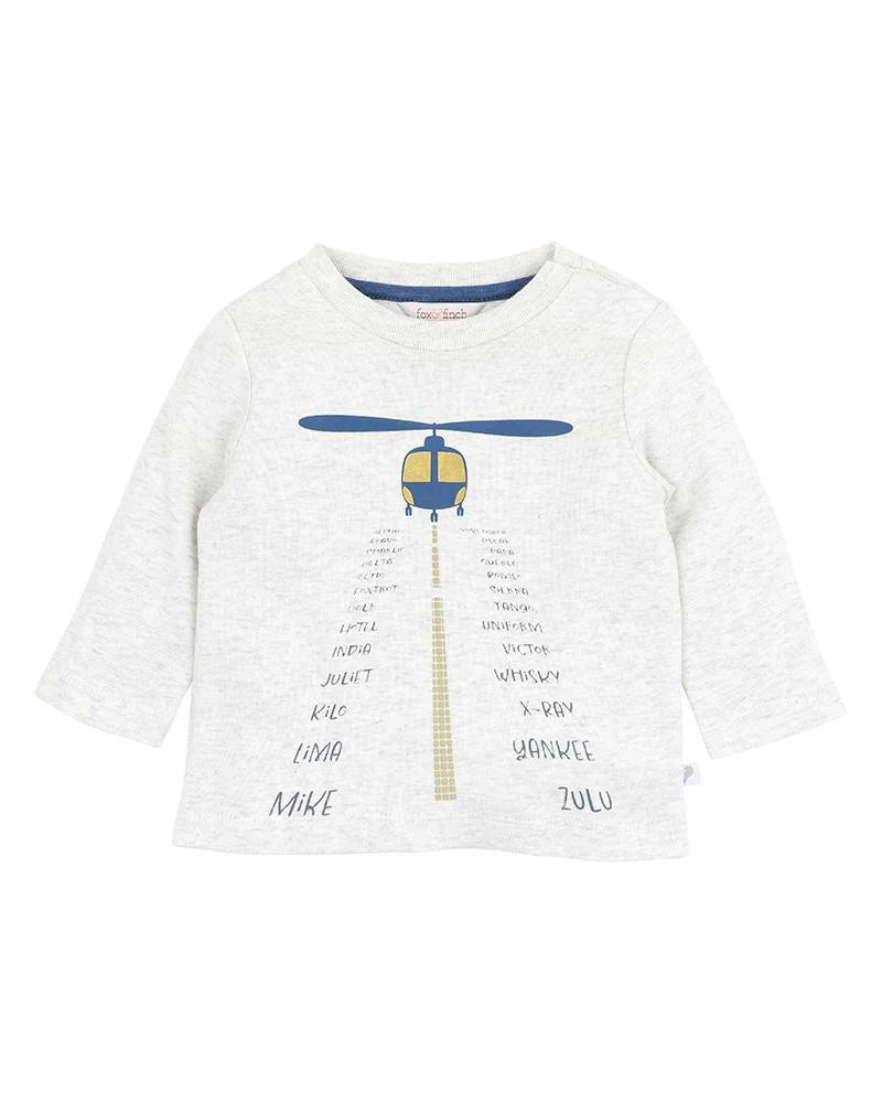 This long sleeve crew neck tee features a fun graphic on the front, concealed press stud shoulder opening and rib neck band, making it a great basic for your little one's Winter wardrobe to wear back with the Boys pull on jeans or High Flyer track pants for a complete outfit.
