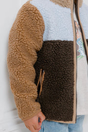 Milky Clothing Colour Block Sherpa Jacket is a luxe item for those chilly winter days. With a center front opening and a high collar for extra warmth, this jacket is perfect for snuggling up and keeping the cold at bay.