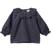 NATURE BABY RUFFLE CAMERON BLOUSE VIOLET POLKA DOT PRINT
