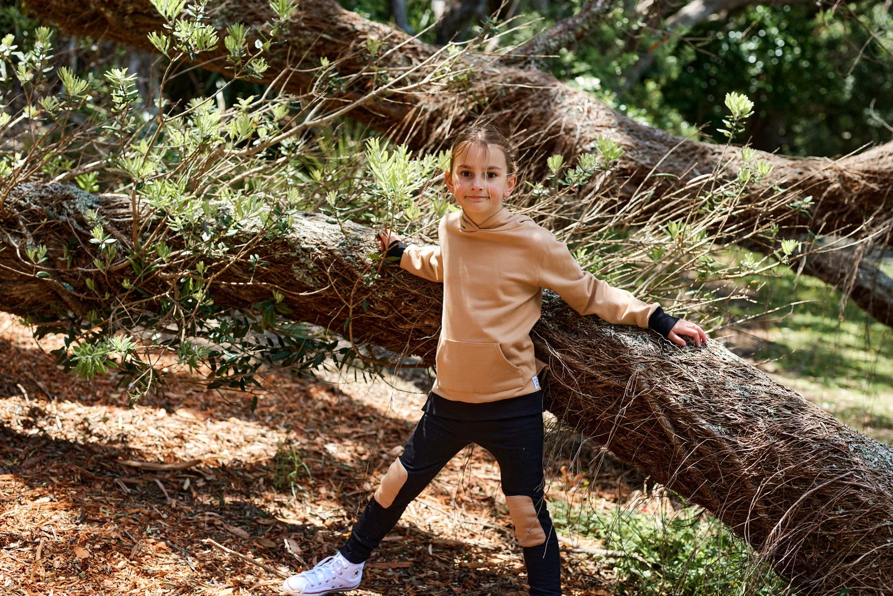 • Triple padded knee pads in caramel – some extra cushioning where the kids need it!