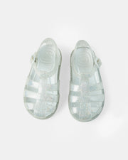 The Frankie Sandal in Sliver features a lightweight jelly-style design with an adjustable strap for a comfy, secure fit. Perfect for beach days, water play, and sunny summer outings.