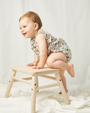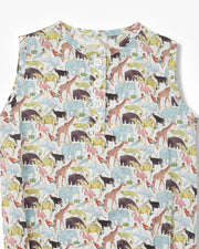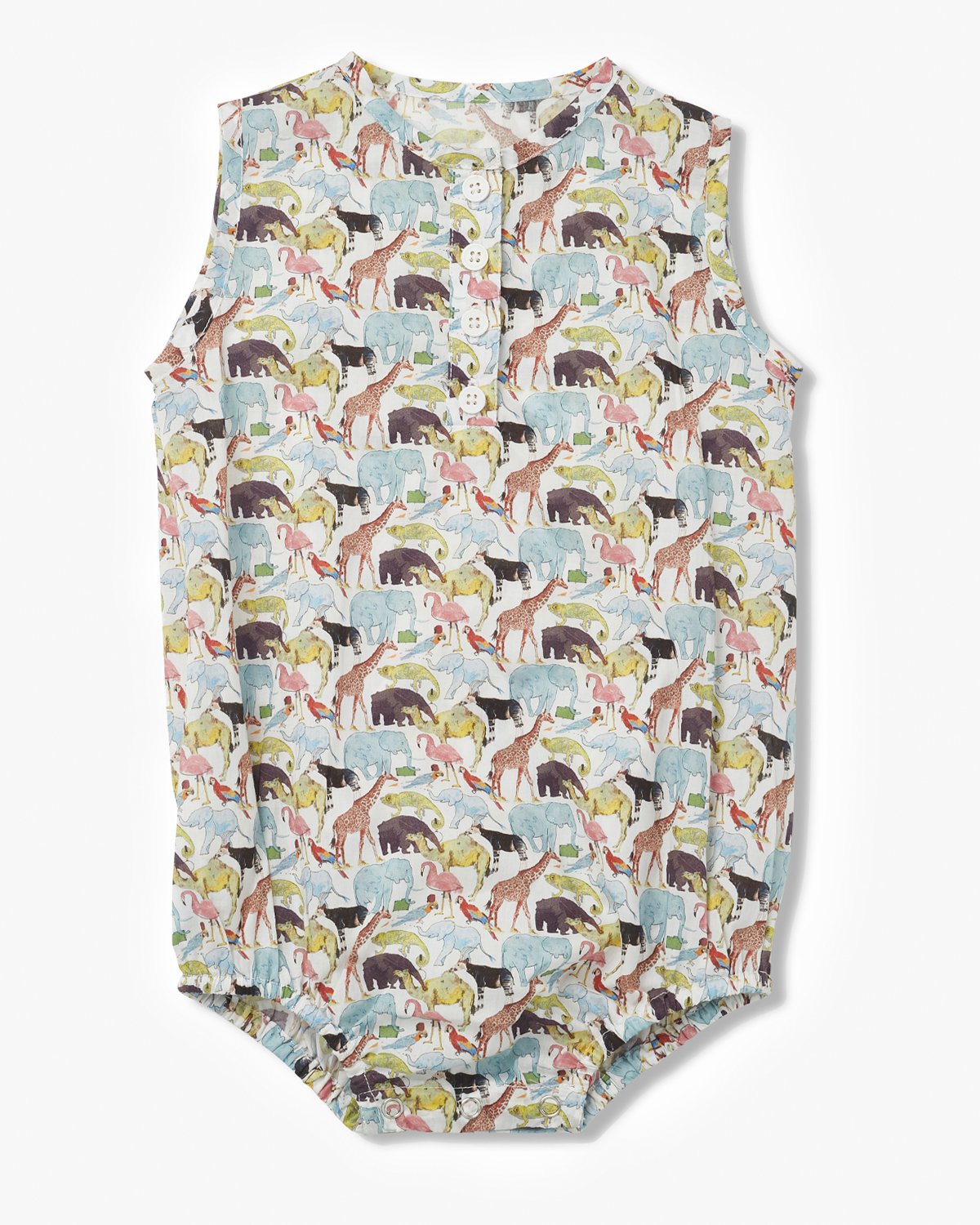 This bubble shaped, sleeveless and legless romper is perfect for summertime! In the beautiful exclusive Liberty Print Zoo print, this sweet all in one outift is perfect for when the tempature soars!