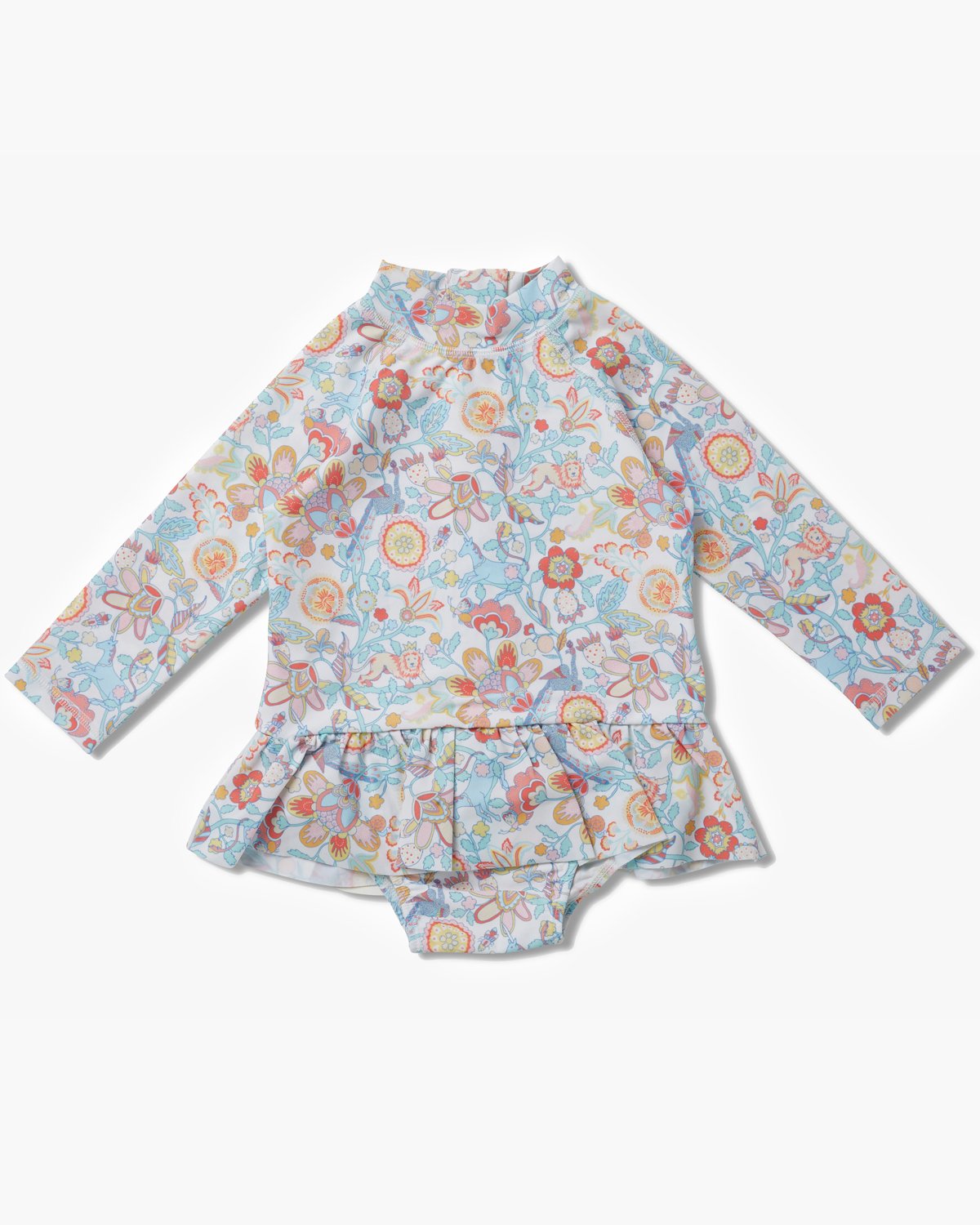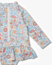 The Pia Bather in beautiful Mythical Forest print is a perfect piece for long sunny days at the beach or pool, featuring a sweet frill detail and a zipper front for the easiest of dressing. With a UPF 50 Rating, these bathers shield the skin from UV rays all day long.