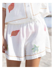 The Sunrays Short by Eve Girl is a must have this season. The style is in a classic relaxed fit with a fun and unique placement embroidery design. The short has an elastic waistband and self fabric frill with soft breathable fabric making for a comfortable and stylish addition to the wardrobe.