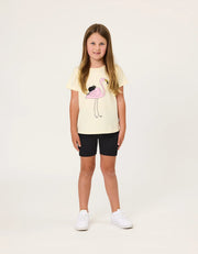 - Small Kissed by Radicool dove logo in white on front thigh
