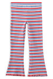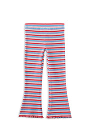The pastel striped pattern adds a playful touch, making them a great addition to any outfit. Whether paired with a cozy sweater for a casual look or dressed up with a cute top for a special occasion, these flared leggings are incredibly versatile. They are sure to become her go-to choice for both everyday adventures and relaxed outings.