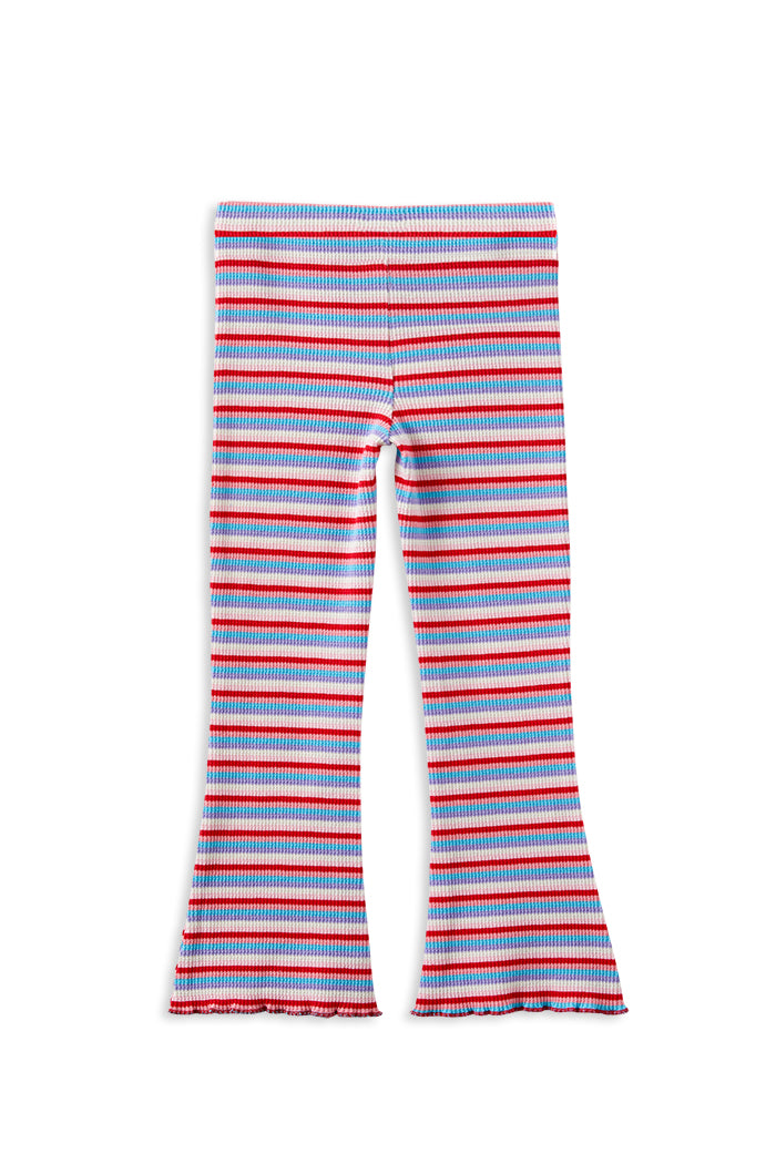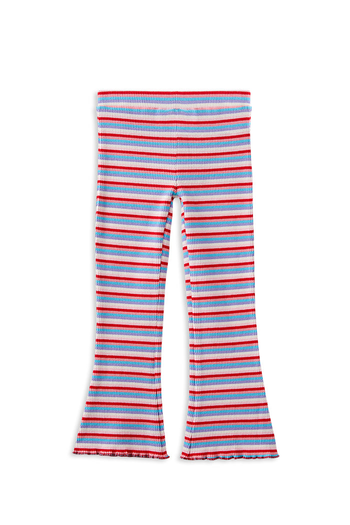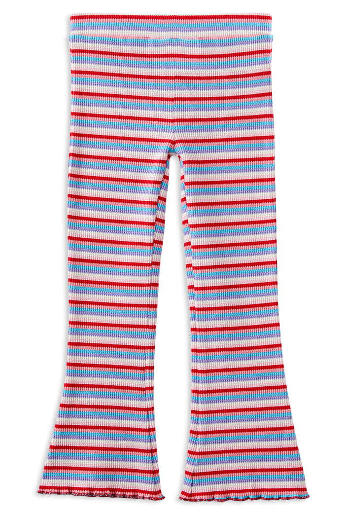 Milky Clothing Fruity Stripe Waffle Flared Leggings are the perfect blend of comfort and durability, designed to keep up with your active little girl. Featuring a non-roll elastic waistband for a secure and comfortable fit, these leggings allow for all-day play without compromising on style.