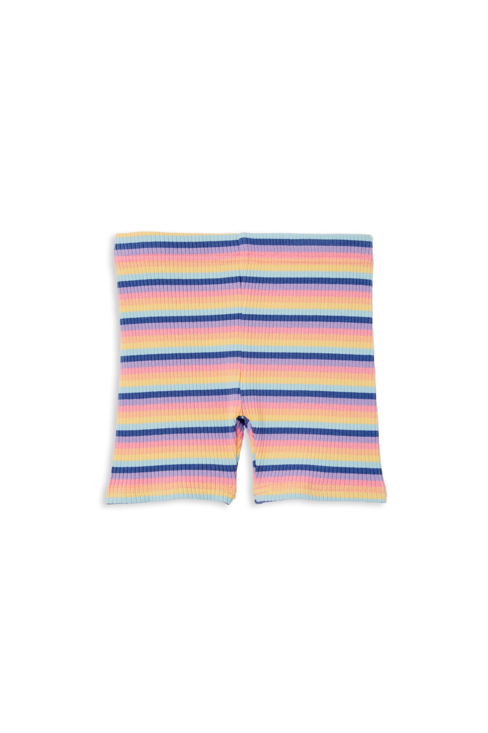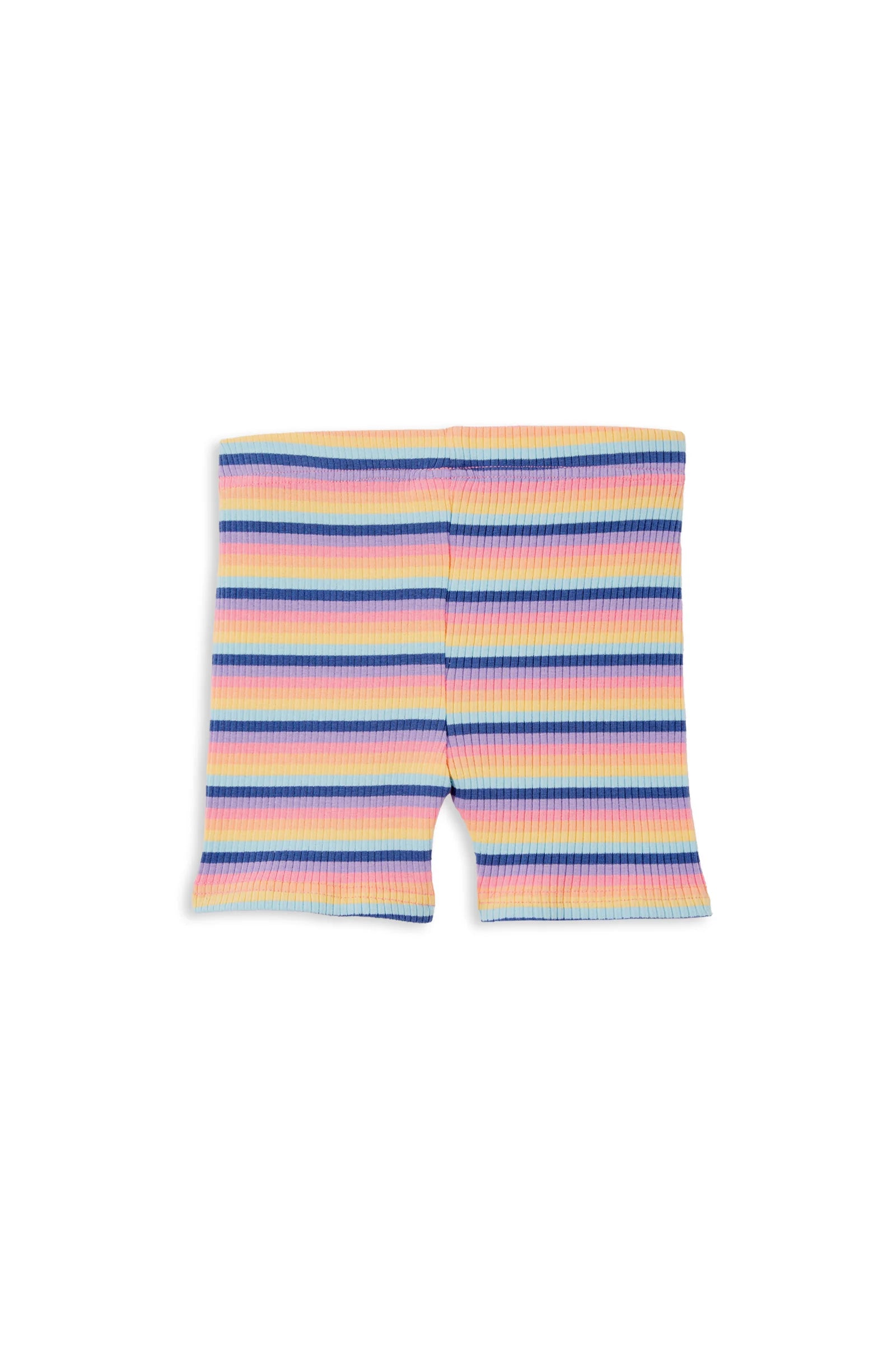 Milky Clothing Multi Stripe Rib Bike Short—a seamless blend of style and comfort, perfect for this season's wardrobe. Crafted with practicality in mind, these shorts feature a delightful horizontal print that effortlessly pairs with a simple tee on warmer days. Embracing the trendy bike short style, they provide a cute outfit option while remaining suitable for all-day activities like running, jumping, and climbing.