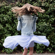 Full tulle skirt lined with cotton voile, elastic waist, lots of layers and its perfect for spinning!I In beautiful Primrose Pink, gorgeous Blue surf or Jacaranda.