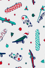 Milky Clothing Christmas Tree PJs. Get into the festive spirit with the Milky Clothing Christmas Tree PJs – the ultimate comfy and cute sleepwear set! Made from a super-soft, durable cotton elastane blend, these PJs are built to last, wash after wash. This set features a cozy short and tee combo, with a navy top showcasing a playful Christmas tree riding a skate board print at the center front, paired with silver marle bottoms adorned with an all-over Christmas design. Whether you're winding down or enjoying a holiday morning, these PJs are the perfect way to add some extra cheer to your celebrations.