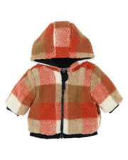 A winter essential for little adventurers, this cosy sherpa check jacket delivers warmth, softness and standout style. Fully lined for extra comfort, it features practical details like pockets and a fold over zip facing to keep the chill out. The bold check pattern brings a fun pop of colour, making it the perfect throw on layer for cold weather days.