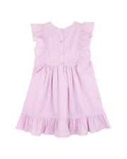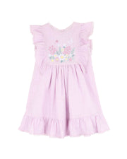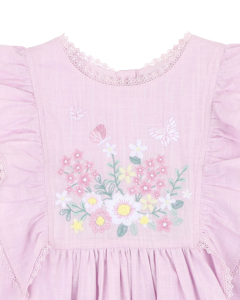 With a meadow of embroidered blooms and the softest shade of lilac, this sweet little dress is ready for garden strolls, birthday parties and everything in between. Delicate lace trims and a gentle ruffle hem add just the right touch of charm, while the breathable cotton crosshatch and full lining ensure she’s comfy all day long. Designed to grow with her world, this dress is also available in bigger sizes for twinning with big sisters.