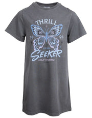 The Wild Heart Tee Dress by Eve Girl is a must have this season. Our classic tee dress shape features a new fun and fresh chest print, on a washed charcoal cotton jersey fabrication. Complete with a rib neckline and relaxed fit, this dress is the perfect everyday piece.