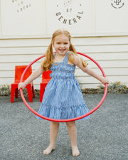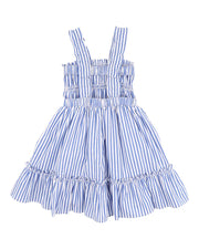 Sunshine-ready and made for twirls, this classic blue stripe dress brings effortless charm to summer days. With its softly gathered bodice and breezy frill hem, it's made for beachside strolls, garden parties and all the little in-between moments. The comfortable smocking and frilled straps add a playful finish that's as sweet as it is easy to wear-perfect for days filled with adventure and laughter.