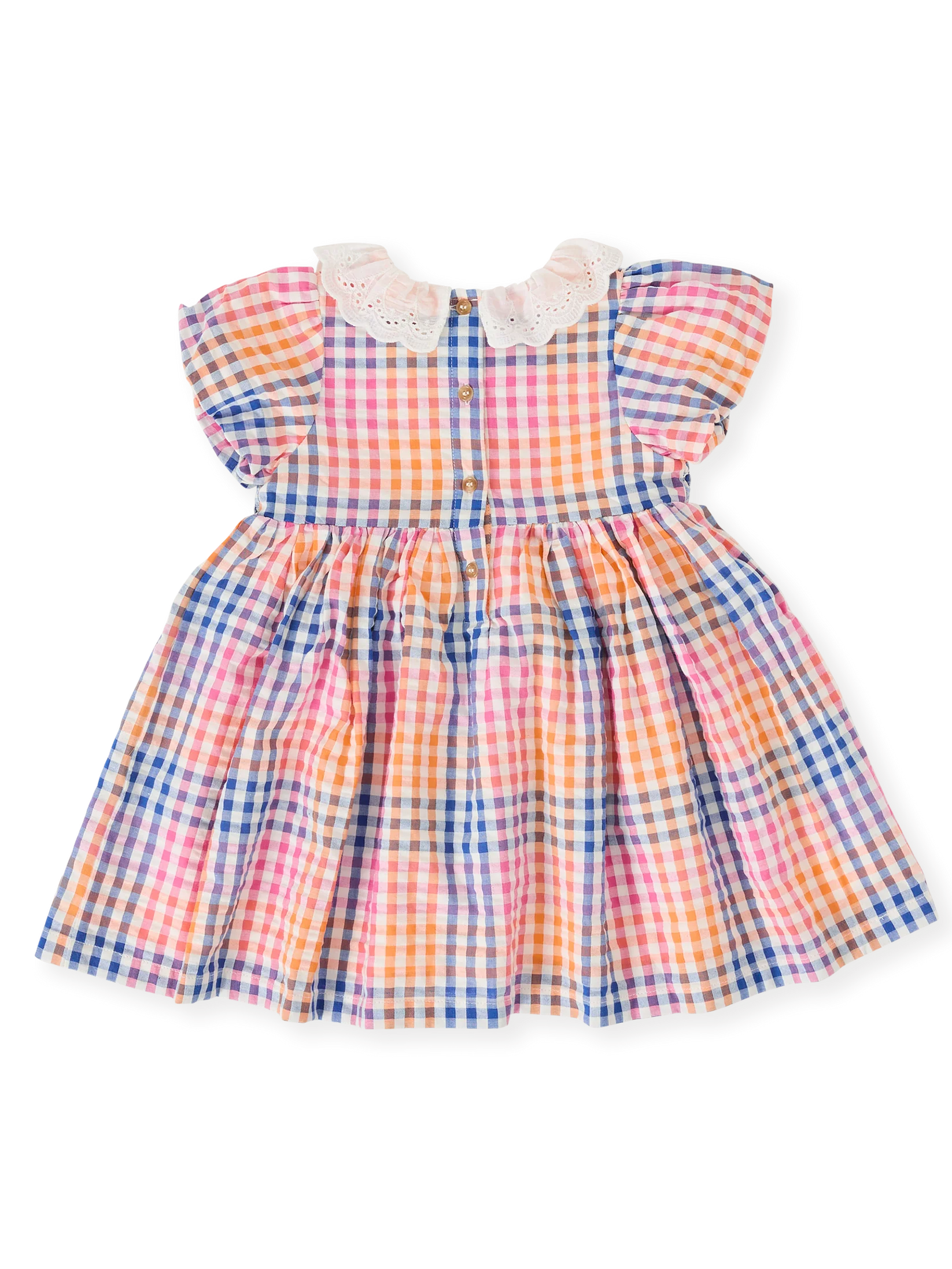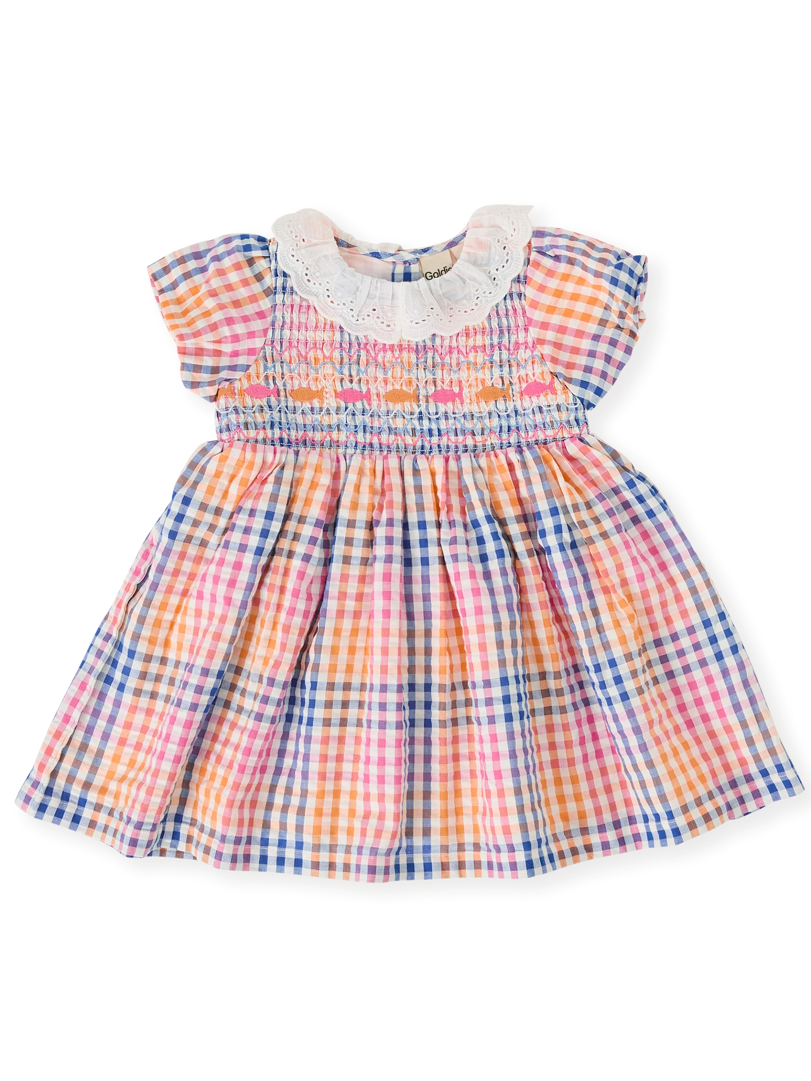 GOLDIE & ACE RAINBOW GINGHAM FLO SMOCKED DRESS