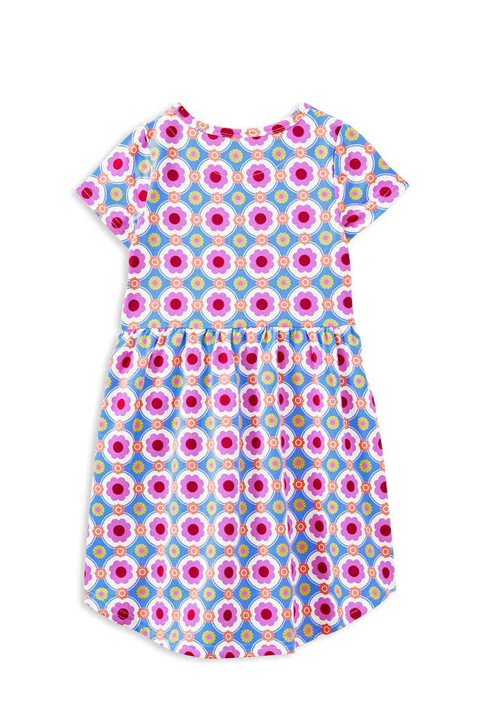 | Milky Clothing Retro Vibe Dress is the ultimate everyday staple for colour-loving kids. Crafted from soft, stretchy cotton jersey, this easy-to-wear style pops with a bold, retro-inspired floral print in vibrant shades of pink, red and blue. Designed for all-day comfort, it features a classic round neckline, gathered waist and straight hemline—perfect for daycare, weekend play, or family outings. Just slip it on and go! |